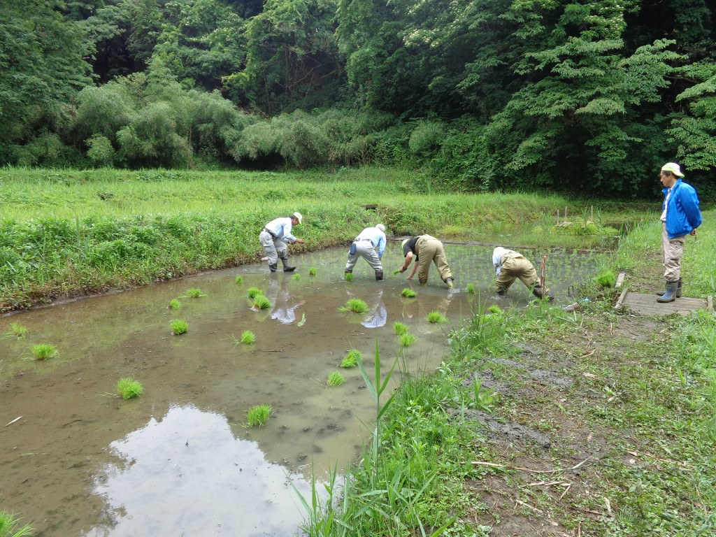 自然観察ゾーンに昨年造成した”たんぼ”に、はじめて田植えをしました。